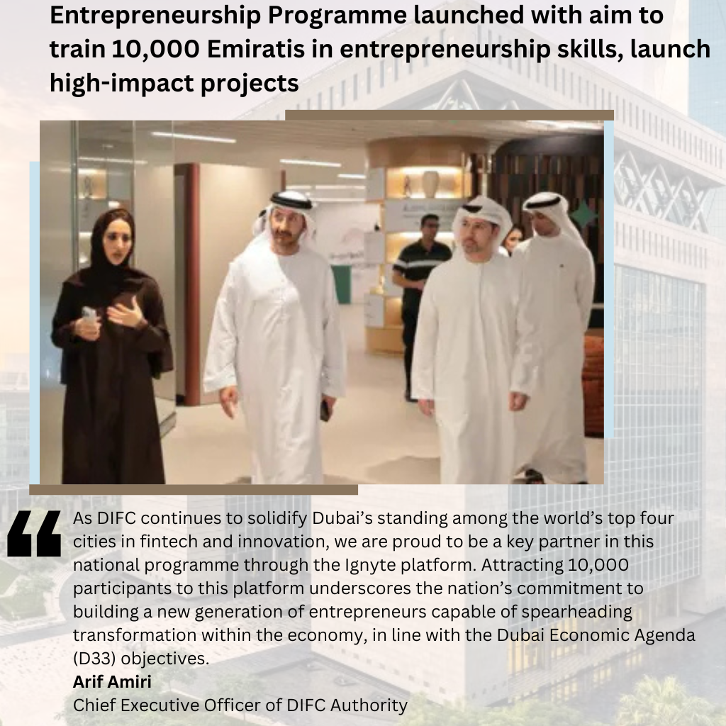 "The ‘Entrepreneurship Programme’ represents a unique opportunity for Emirati youth to acquire the practical skills and technical knowledge that enable them to transform their ideas into innovative, scalable ventures. This initiative highlights the growing confidence in the capabilities of Emiratis, while enhancing the UAE’s position as a global capital for entrepreneurship and innovation. As DIFC continues to solidify Dubai&rsq…