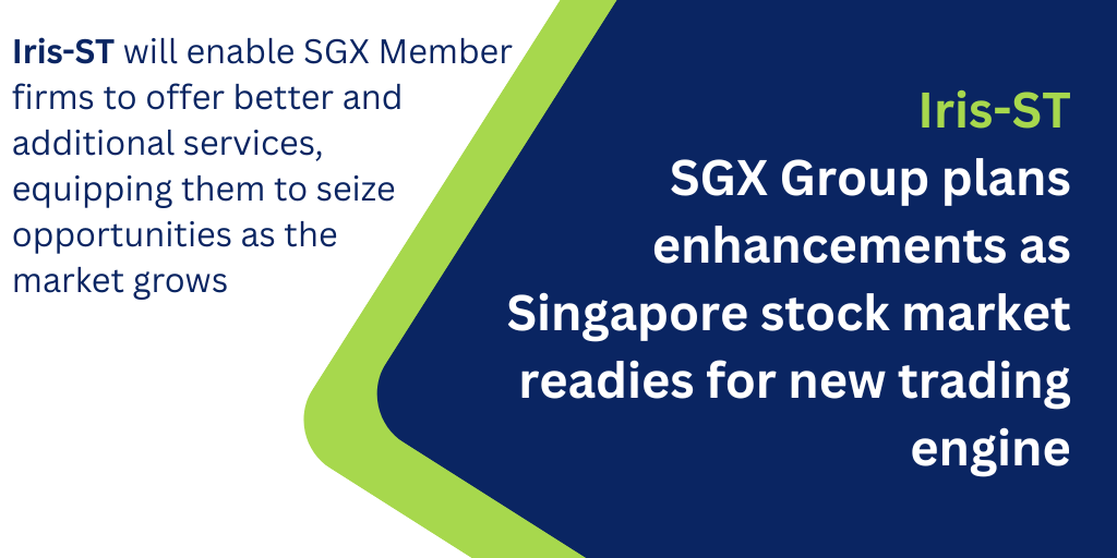 SGX Group (Singapore Exchange) is introducing a new trading engine, “Iris-ST”, in the Singapore stock market. Iris-ST will enable SGX Member firms to offer better and additional services, equipping them to seize opportunities as the market grows. “The new and improved features in Iris-ST will deliver benefits to the Singapore stock market and market participants. These features range from new order types and risk controls to mor…
