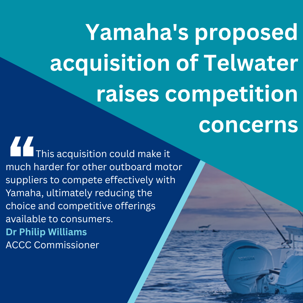 “We are concerned that, following the acquisition, Yamaha would have the ability and incentive to link the wholesale supply of Yamaha outboard motors to Telwater aluminium trailer boats, for example, by requiring dealers of Telwater boats to also become Yamaha outboard motor dealers,” ACCC Commissioner Dr Philip Williams said.