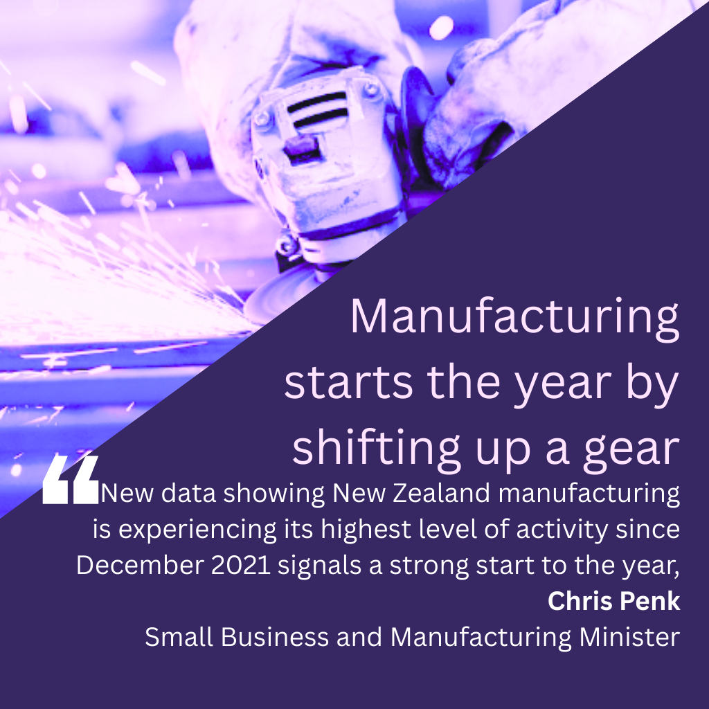 New data showing New Zealand manufacturing is experiencing its highest level of activity since December 2021 signals a strong start to the year, Small Business and Manufacturing Minister Chris Penk says.